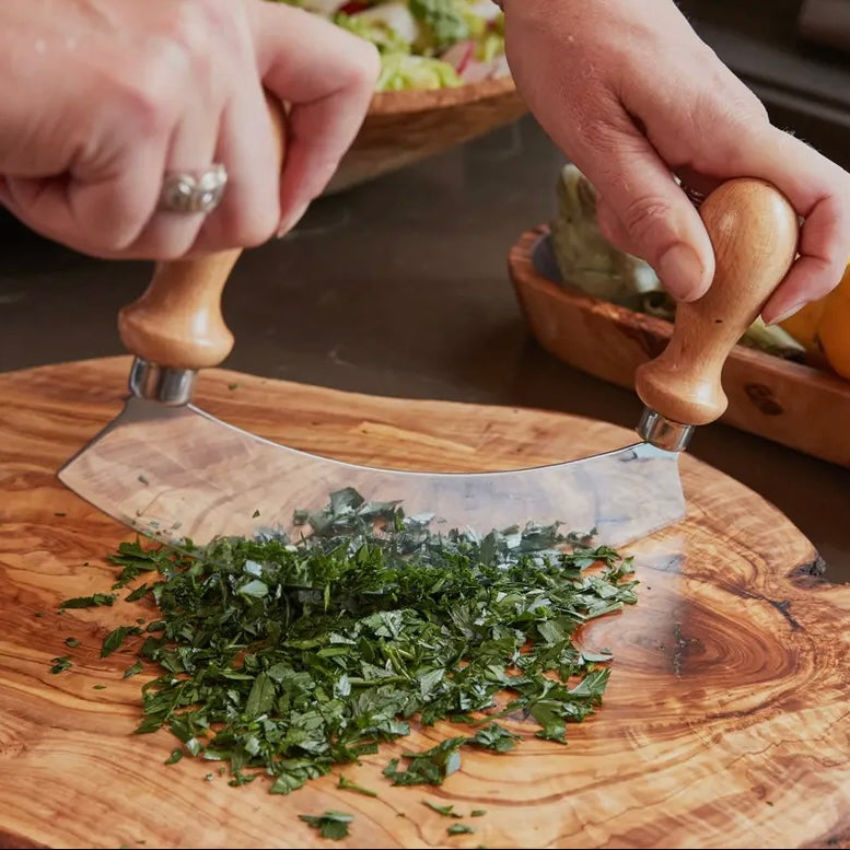 A traditional tool, the "Mezzaluna," meaning, "half-moon" in Italian after the curved shape of its blade, is a culinary favorite when it comes to quick, efficient chopping.
