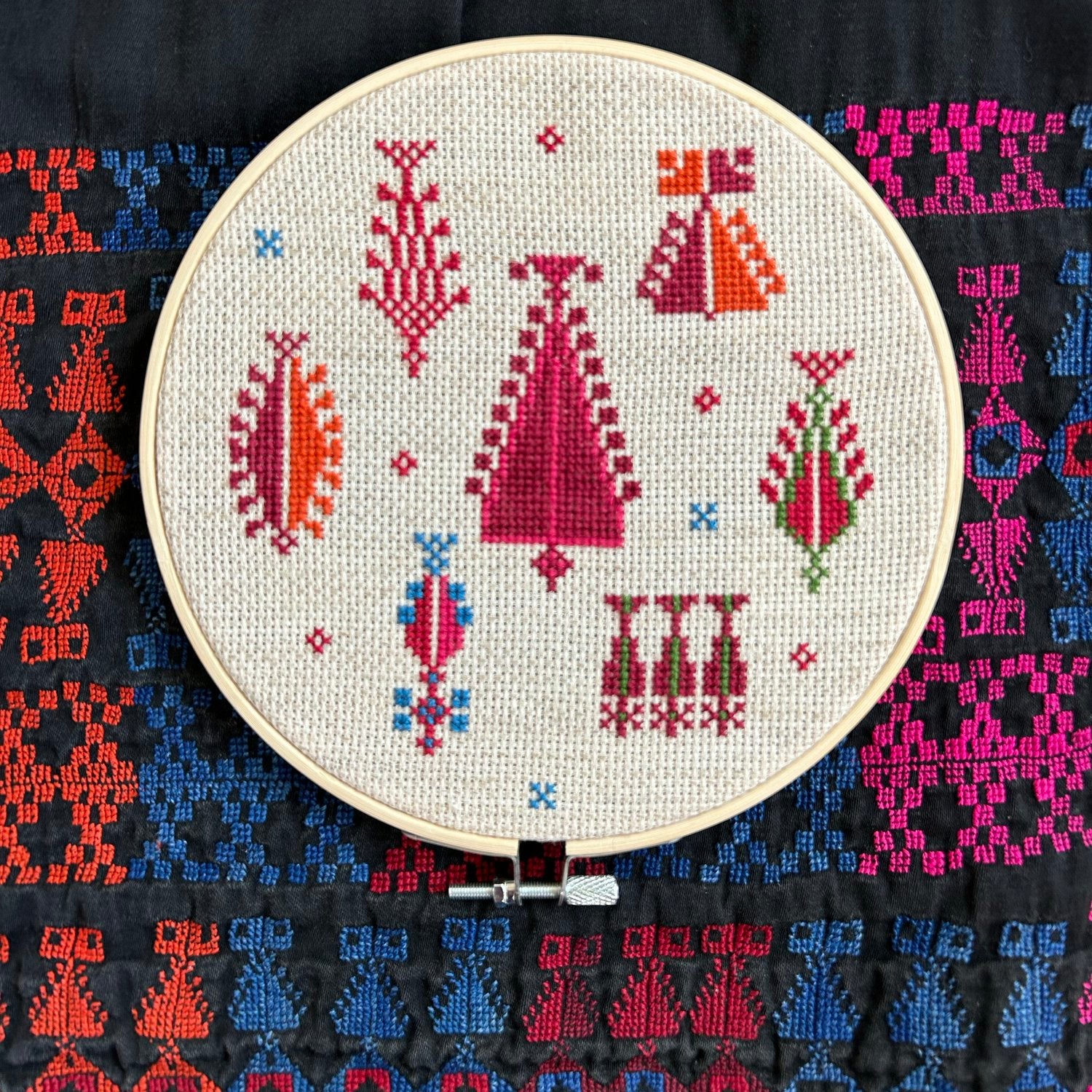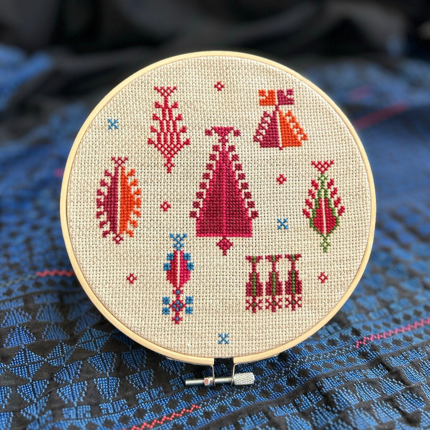 - Step by step embroidery instruction manual explaining how to embroider the typical Palestinian cross “fallahi” stitch.